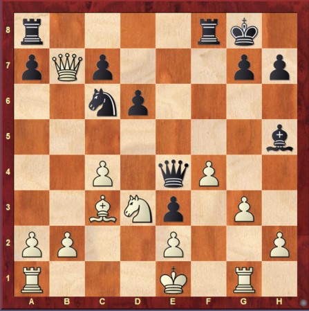Maurice: Ik had de consequenties van Pxf7 niet goed overzien. Het paard van de tegenstander leek verloren te gaan voor een paar pionnen, maar door de actieve witte stukken en zwarte stukken die elkaar in de weg stonden, kwam wit uiteindelijk gewonnen te staan. Mijn tegenstander Schipper schoof dat mooi uit. 1½-1½