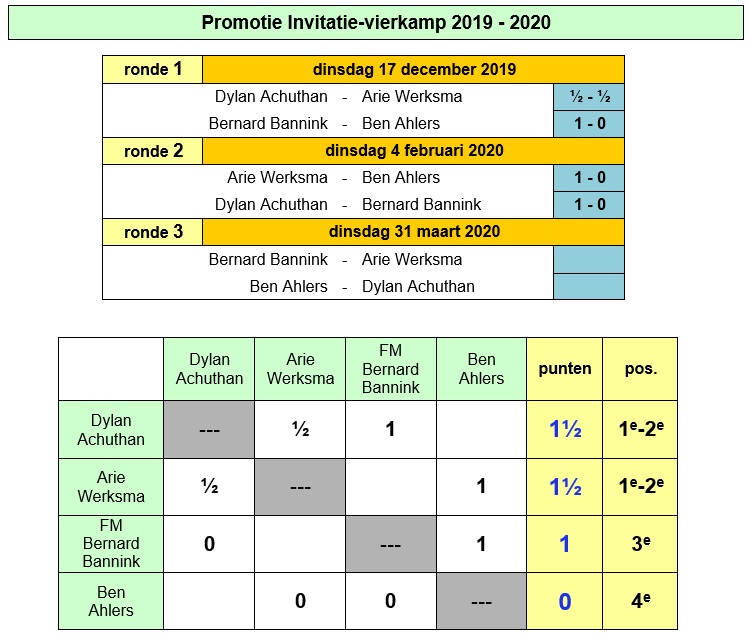 De tegenstander in de halve finale is DSC (uitwedstrijd voor Promotie); de andere halve finale gaat tussen RSC-Belgisch Park en Schaakmat Westland.