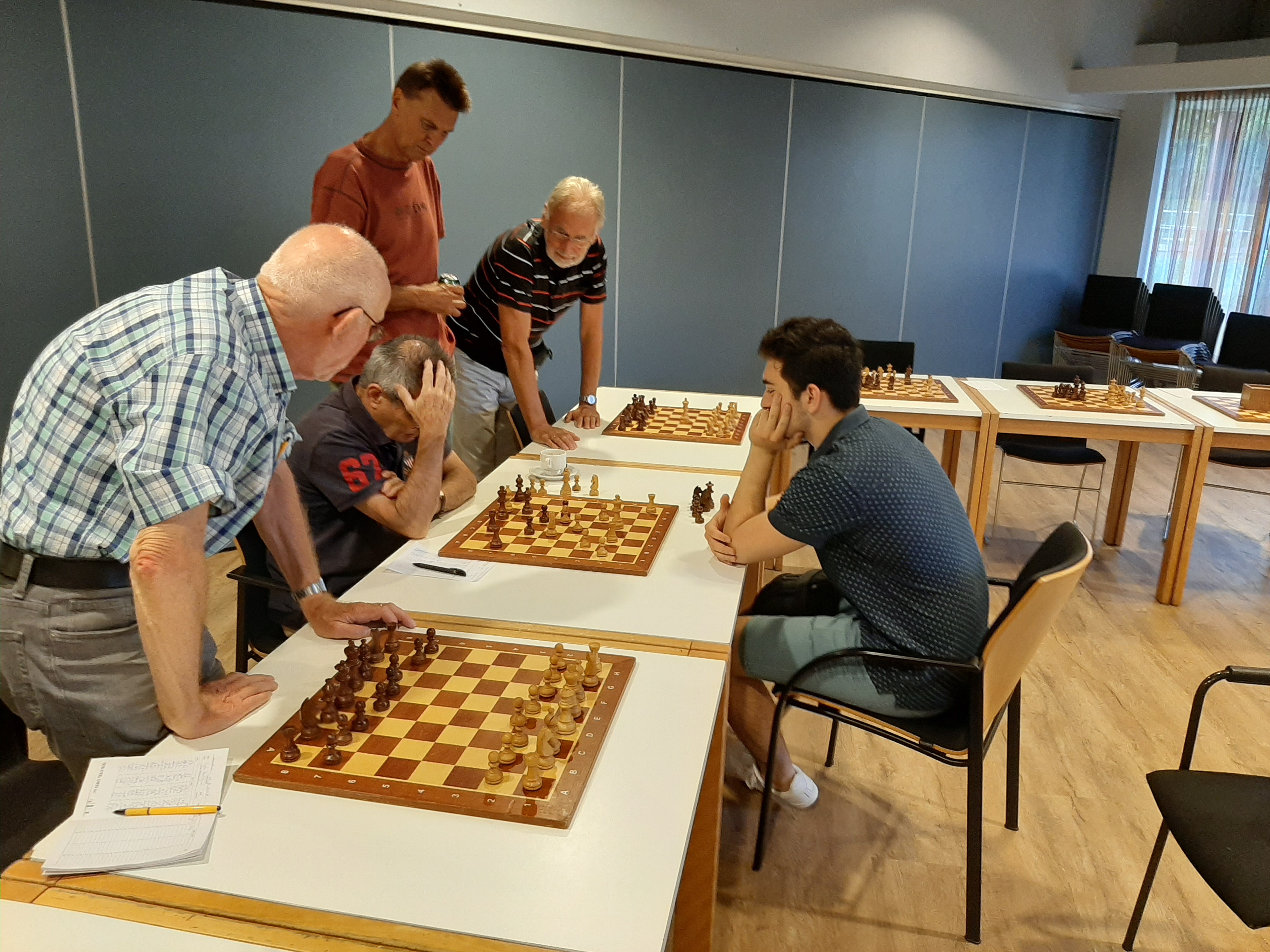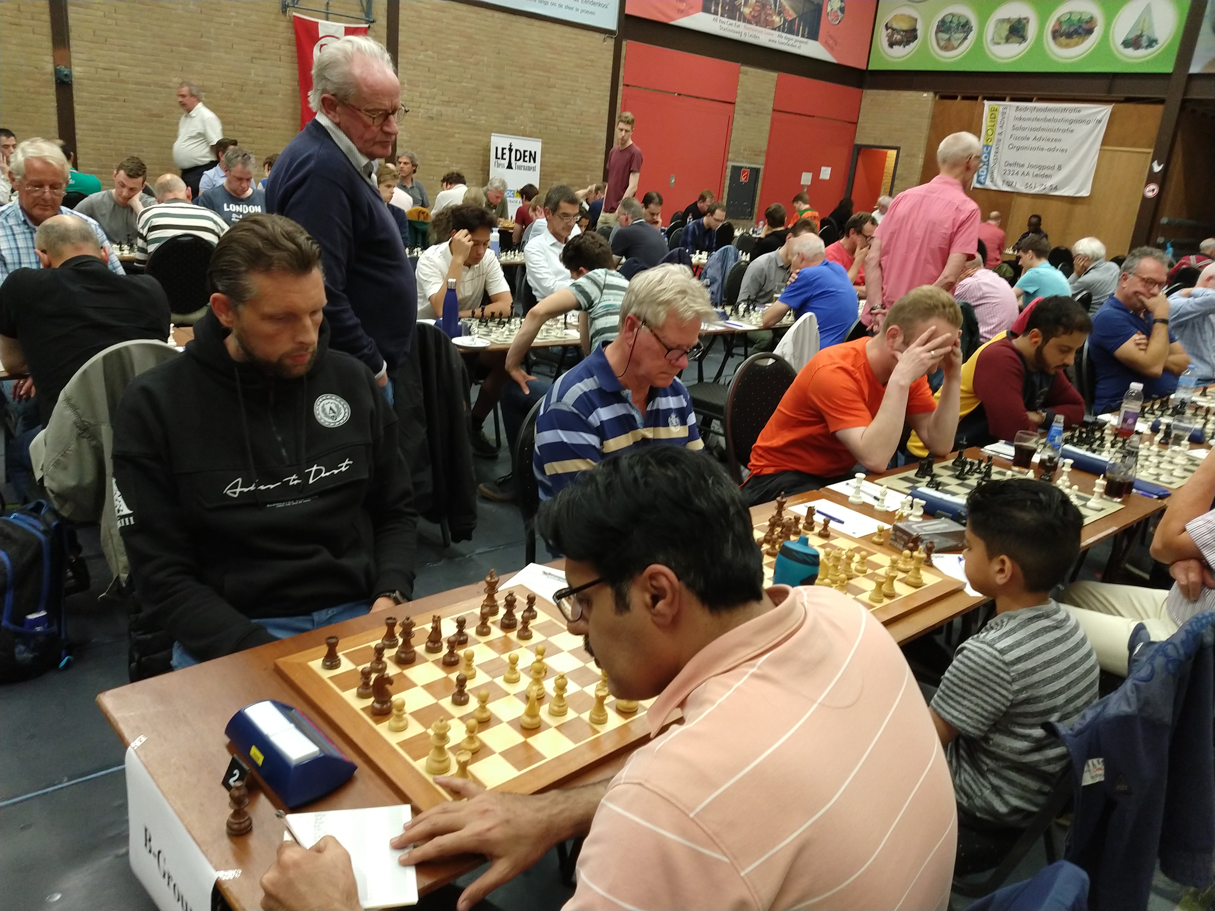 Nee, dit is niet de speelzaal van Promotie. U kijkt naar de borden 2 t/m 4 van de B-groep van LCT 2019, ronde 5.