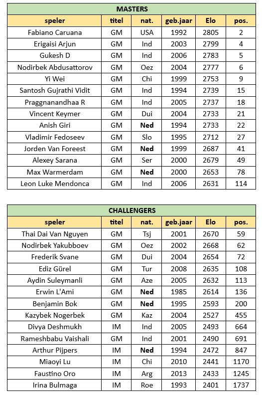 Titelhouders: 35x GM, 2x WGM, 17x IM, 4x FM, 2x geen.