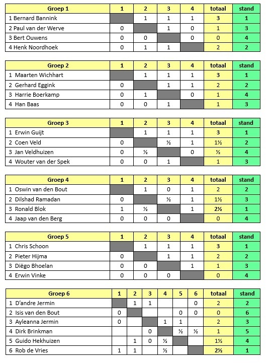 Voor iedereen was het een mooie opmaat voor ons Open Rapidtoernooi waaraan iedere schaakliefhebber vanaf 25 november kan deelnemen (zie het item van 19 november).Eindstanden: