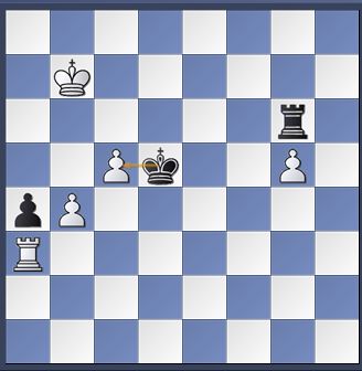 Bij Hielke eindigde de partij als volgt. Zijn tegenstander had zwart. De witte toren heef de a-pion stevig onder schot. Er volgde echter 1.., Td3+!! en wit gaf op.