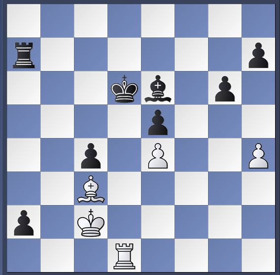 Tweede ronde Spanjaard van 28 jaar.Derde ronde tegen Nino Maisuradze. Een Georgische dame die 5 jaar geleden naar Frankrijk is verhuisd. Tweemaal kampioen van Frankrijk. Ze kende de naam van Robby. Was op het rapid en blitz kampioenschap, maar heeft hem niet gesproken. Robby…: even contact opnemen. Noem miin naam maar. Altijd handig een contact in Frankrijk.Stelling na zet 63 van zwart. Nino kan waarschijnlijk winnen door Tf6. Ze slaat echter op h5. Zwart staat virtueel 3 pionnen achter, maar het is nu potremise.”