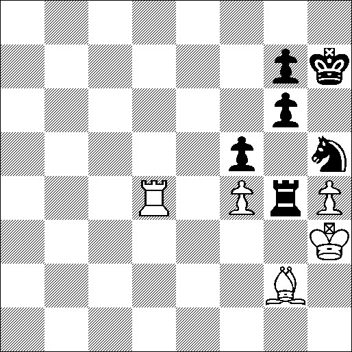 Nadat zwart 1.., f4-f3 speelde vervolgde ik met 2. Tb5-g5+! en het is remise door eeuwig schaak of pat. De koning is gevangen op de f-, g- en h-lijn. Op Kg4-f4 volgde Tf5+ en de toren kan door de pion en door het paard worden geslagen, in allebei gevallen is pat het resultaat.Zeer onverdiend door wit, maar zo gaat dat soms. Wel aardig voor onze site.