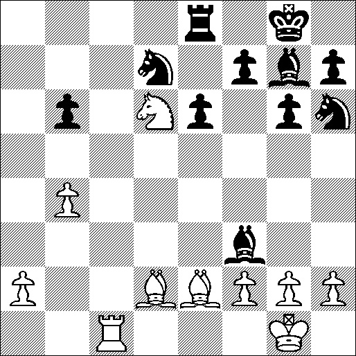 Maar… omstanders wezen hem op 2. Lc6!! waarna Te8 de controle over de 8e rij moet loslaten en de loper valt. Bijvoorbeeld 2..,Te6 3. Td8+ Ke7 4. Txc8 en wit blijft een stuk voor. Beter voor zwart zou zijn om dan maar de kwaliteit te offeren, maar dat verliest ook.