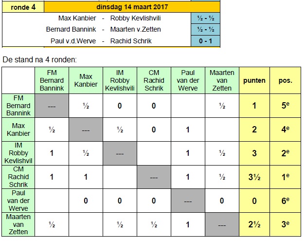 Paul kreeg niet de kans om achter het bord zijn door ons gevreesde ongebreidelde, fabeltastische agressie te etaleren en zat al na twintig zetten tegen een dode stelling aan te kijken. Wat zijn tegenstander en hem niet verhinderde nog twintig nutteloze zetten te doen. Nico investeerde (verloor?) een pion, maar kreeg compensatie en kon het ding terugwinnen. Ook hier een halfje.