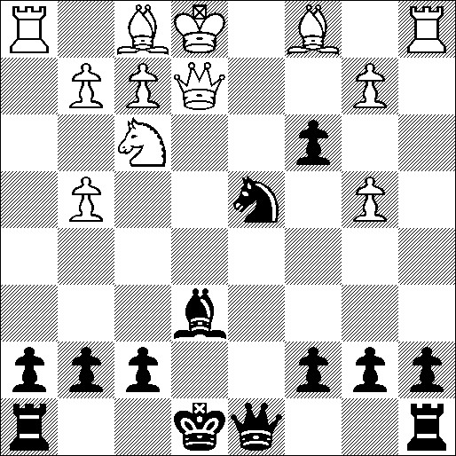 13. Pxd4 Dxd4, 14. Dd3 Dxb4, 15. bxc3 Dxg4, 16. Txh7 Txh7 (beter: 16. … 0-0), 17. Dxh7 0-0-0 (dreigt Dd1#),