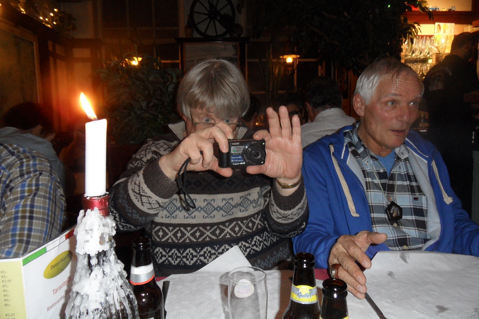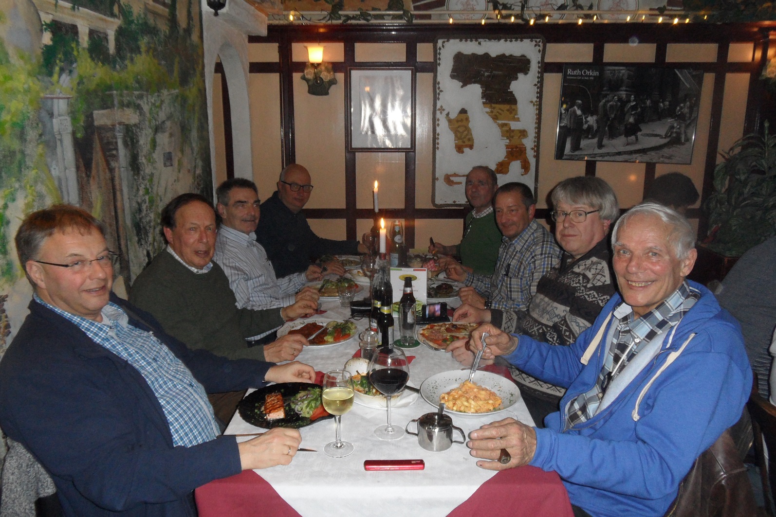 het jaarlijkse gezamenlijke etentje; omdat het Vissershuys zijn deuren heeft gesloten nu bij de Italiaan, aanbevolen door de verkenners van de vierkampen (Chris en Martin):