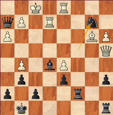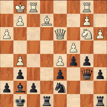 Na wits 22e zet Dd3-a6+ speelde zwart Kc8-b8 (zie diagram), i.p.v. De4-b7, waarmee hij het langer had kunnen volhouden.
