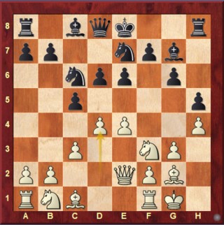 Jan Willem besluit in de opening een pion te offeren. Zie diagram: 9. d4! Ook met het idee de gebaande paden te verlaten en de tegenstander op eigen kracht te laten spelen. Het pionoffer werd na rijp beraad aangenomen. Het plan de tegenstander op eigen kracht te laten spelen bleek te werken: Jan Willem greep het initiatief en zette de tegenstander onder zware druk, tot deze bezweek.