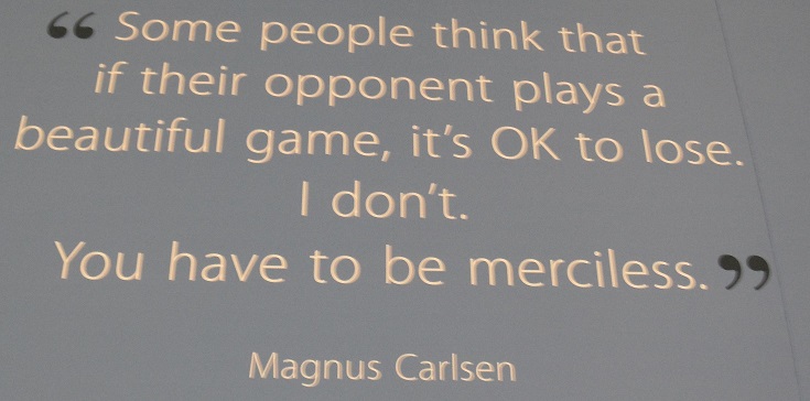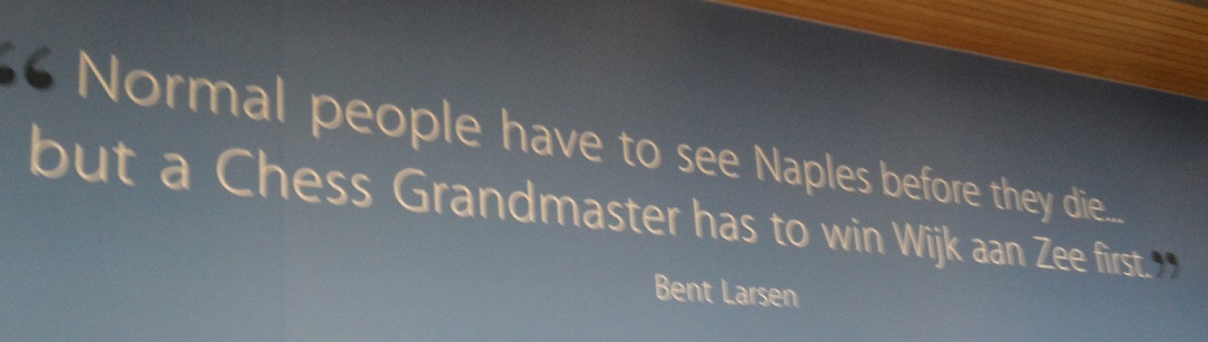 (RdV) – De wand van de grote Tata-speelzaal is dit jaar voorzien van uitspraken van beroemde schakers. Ik zal er af en toe eentje laten zien. Hierbij de eerste.