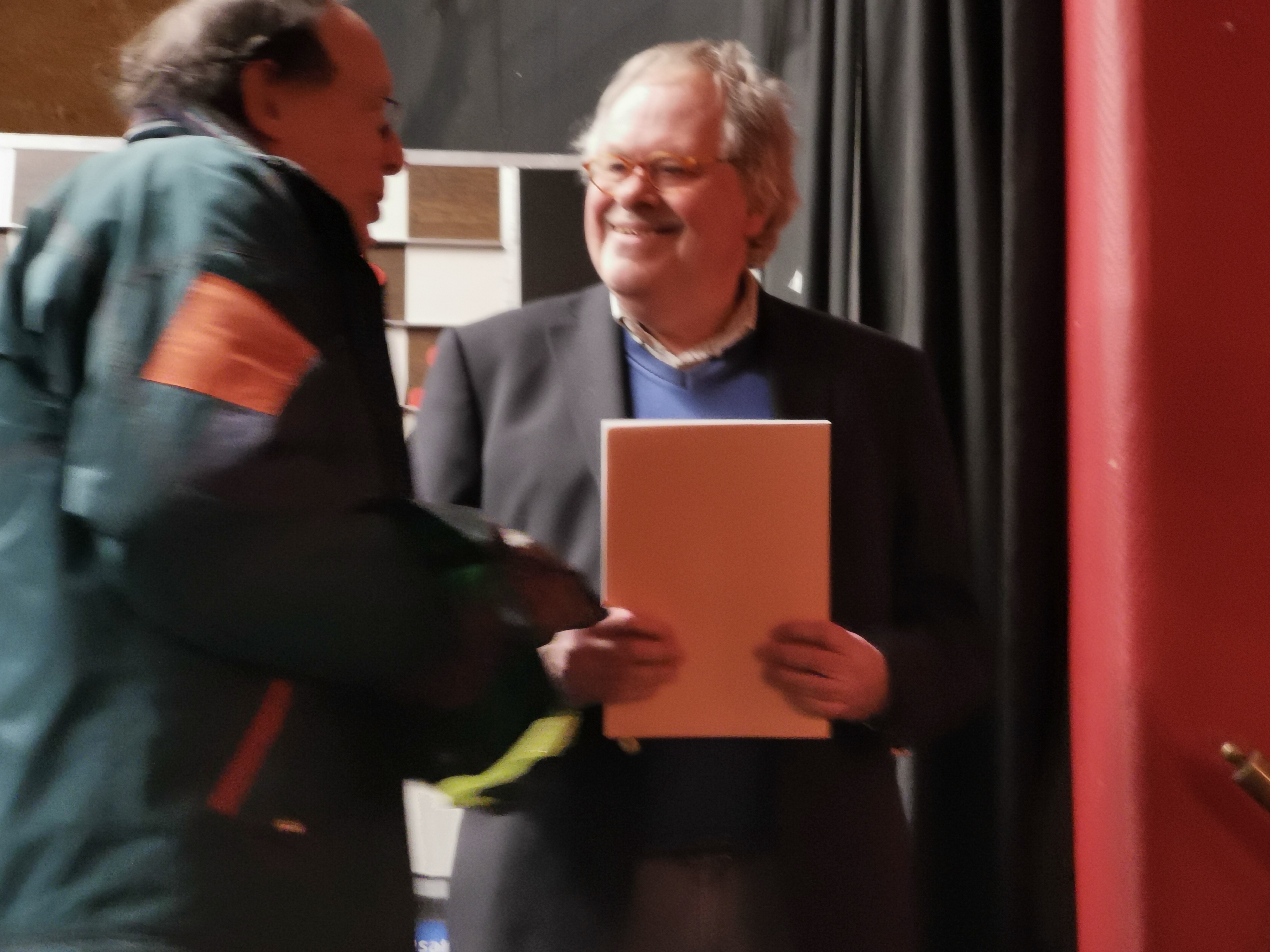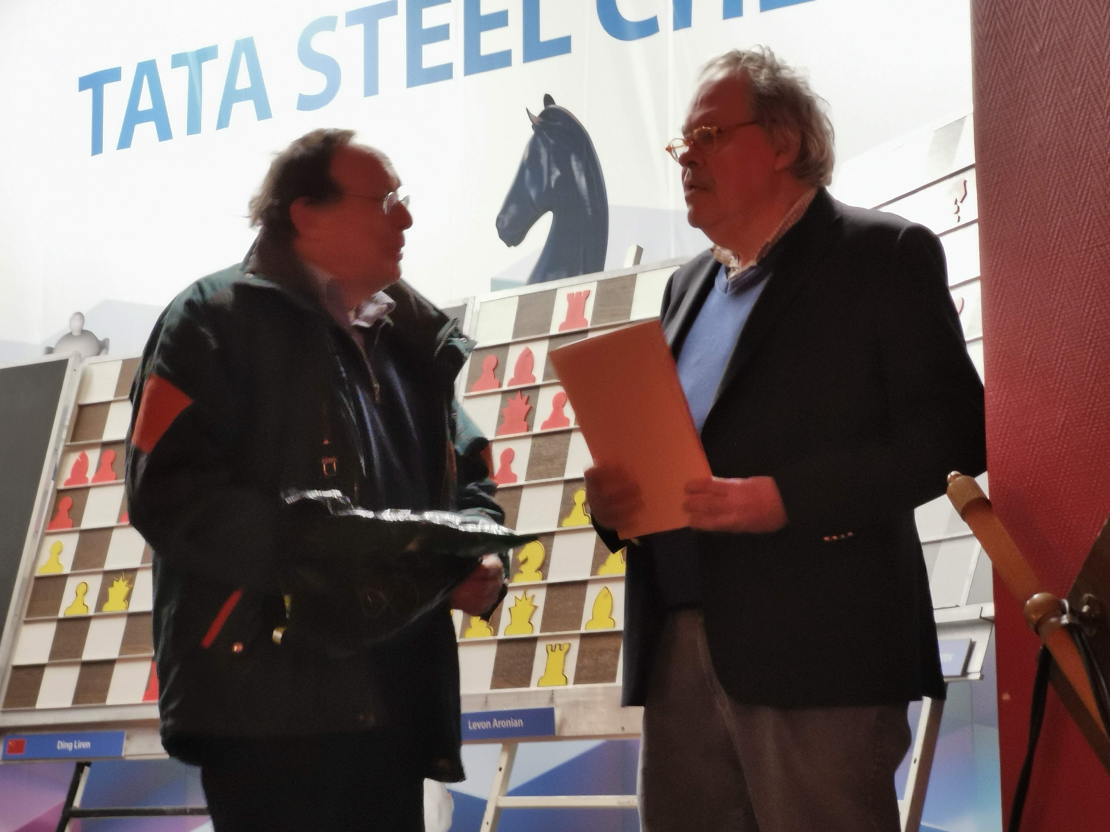 En hier nog twee plaatjes (gemaakt door Henk Alberts) van de overhandiging van ons jubileumboek aan GM Hans Ree (zie Tata-journaal 11).