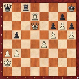 De tegenstander deelde de finale klap uit met een torenoffer. Vrijdagmiddag speelde de Spanjaard Pedro Chidichimo (na 50. … Da8): 51. Txg7. Slaan mag niet want op 51. Kxg7 volgt 52. De7+ met daarna mat voor het uitzoeken.
