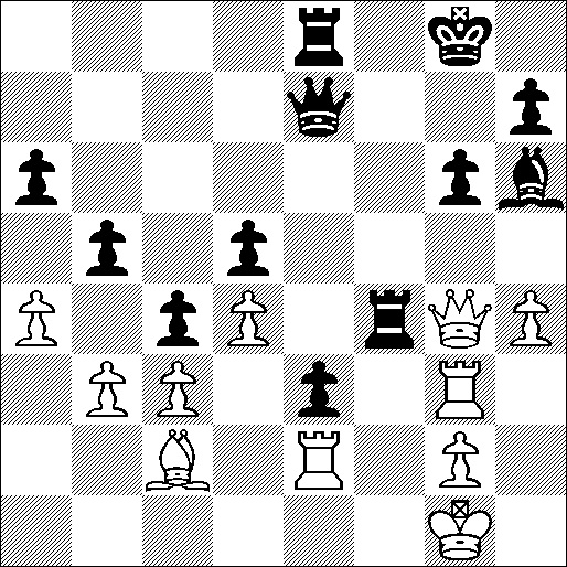 Zwart heeft zojuist 29. … Tf6-f4 gespeeld, en dreigt de witte dame te winnen: 30. Dh3 Txh4.
