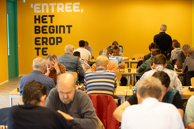 De Promotianen Joost Mostert en Hans Minnema aan de rechterzijde (Foto Harry Gielen)De achtkampen waren een prooi voor achtereenvolgens Jaap van den Berg (Promotie), Siem de Vries (Promotie) en huisschaker Denis Pogrebniak. De uitslagen zijn hier te vinden.